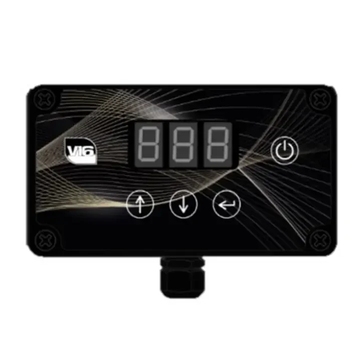 Deze speciaal digitale voltregelaar is spatwaterdicht. Heeft een automatische afslag voor afgemeten watergebruik en om problemen met microswitch in de SHURflo-pompen te voorkomen.